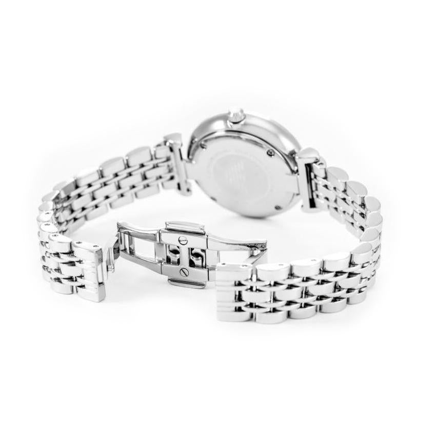Diese Damenuhr von Emporio Armani (Modell AR11170) in Silber-Weiß-Marmor-Optik aus Edelstahl ist eine fantastische und außergewöhnliche Uhr. Sie verfügt über ein 32-mm-Edelstahlgehäuse mit analoger Anzeige, ein weißes Marmorzifferblatt, ein Edelstahlarmband und ein Quarzwerk. Die Uhr ist bis 30 Meter wasserdicht und wird in einer Präsentationsbox geliefert.