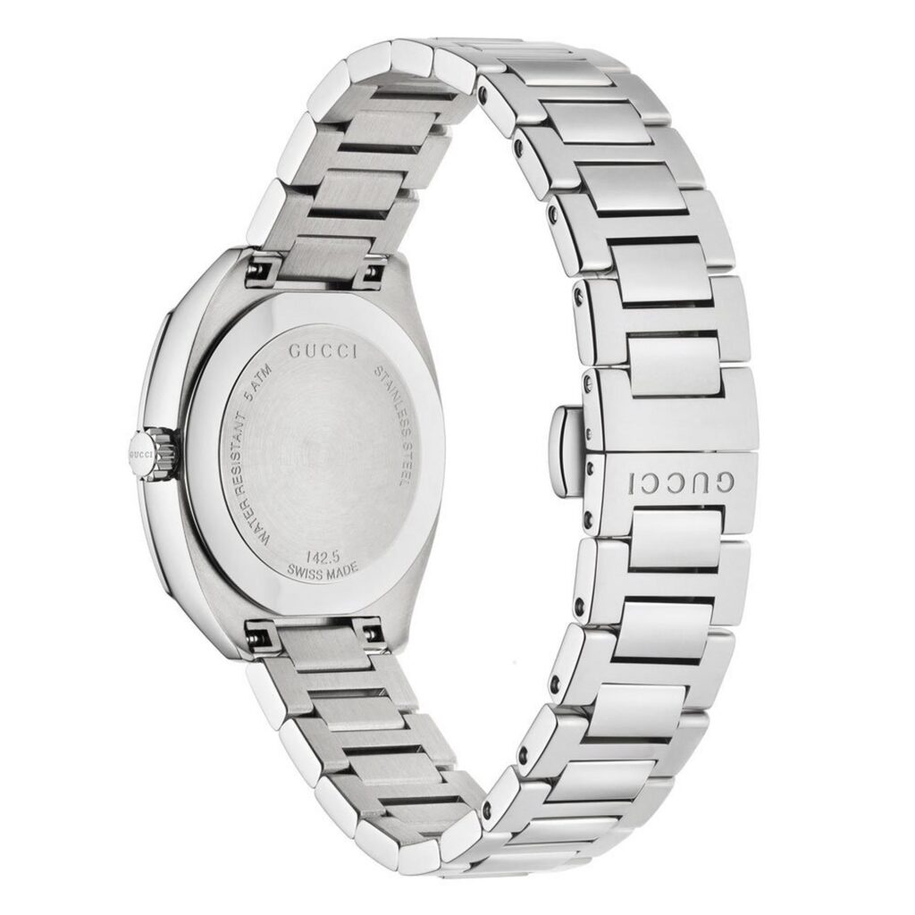 - Black dial with Gucci G design