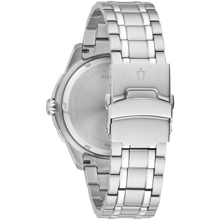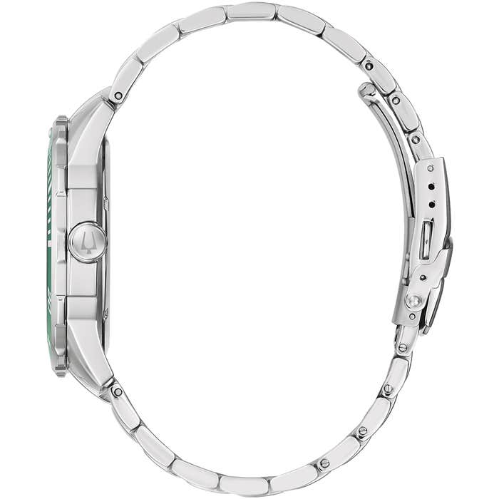 This men’s Classic Sports timepiece features a stainless steel case, a green dial with white markings and a date window. A matching green unidirectional bezel with white intermittent minute numbers and markings. This quartz analogue watch has a stainless steel bracelet with fold over clasp and push buttons and is water resistant to 100 metres.