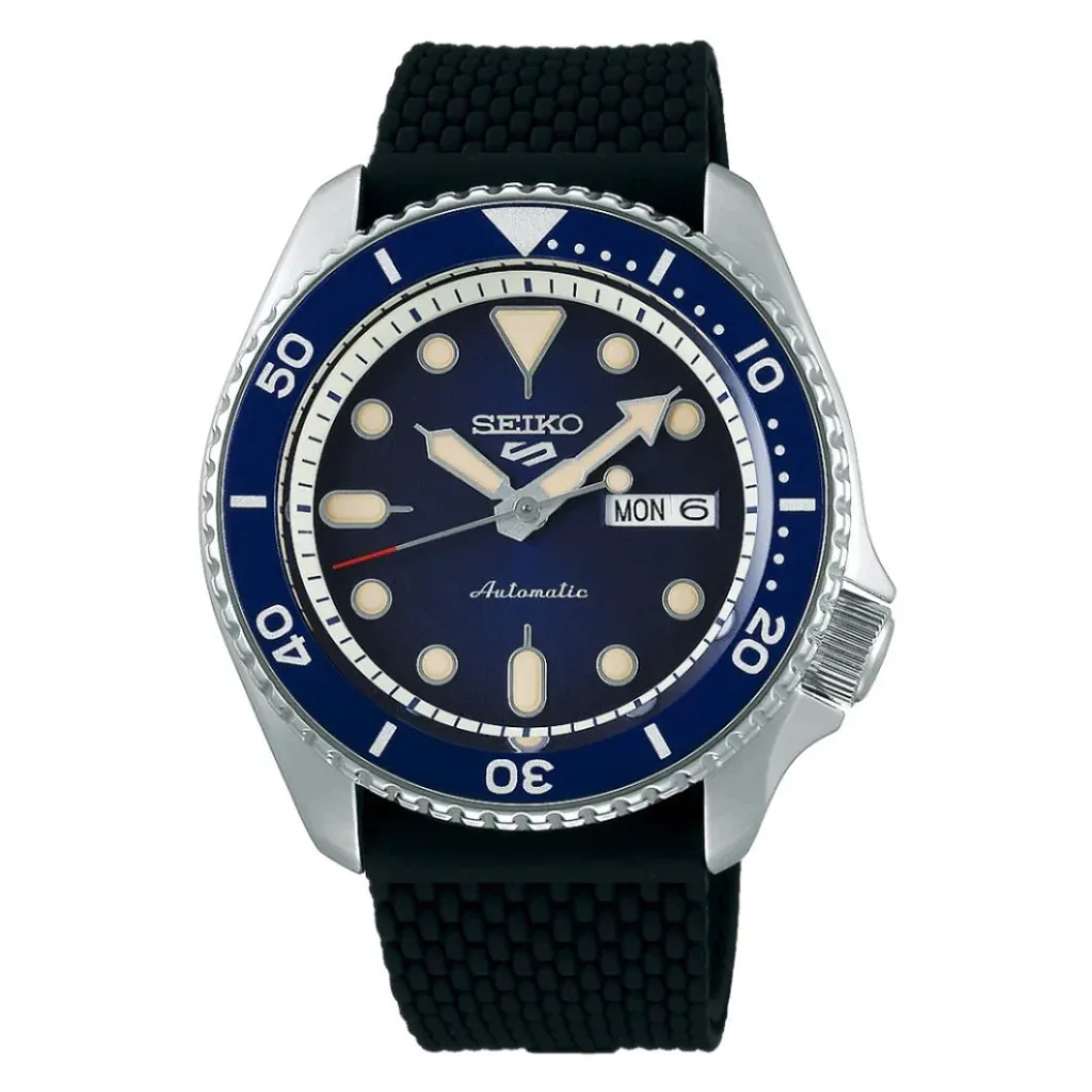 The SRPD71K2 is a model from Seiko’s 5 Sports collection, known for its robust design and affordability. This automatic watch features a durable stainless steel case, a striking blue dial with a day-date display, and luminous hands and markers for enhanced readability. It is equipped with Seiko’s reliable 4R36 movement, offering a power reserve of approximately 41 hours. The watch also includes a unidirectional rotating bezel and a see-through case back.