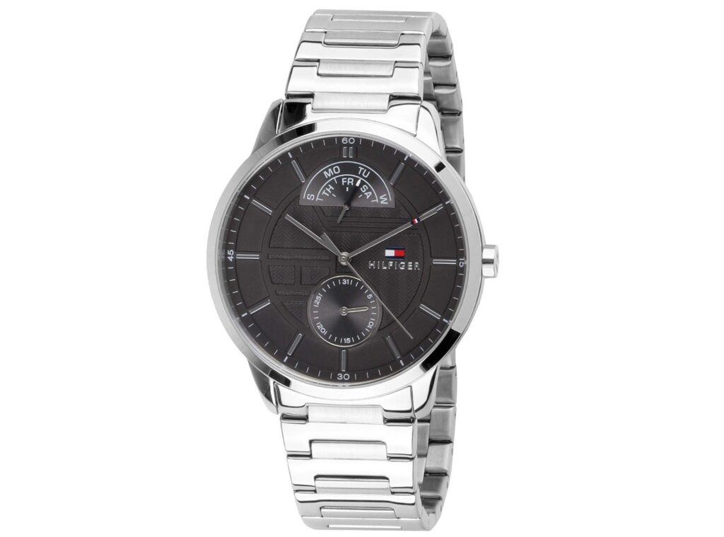 Tommy Hilfiger watch. Impeccable timing is guaranteed thanks to our modern, multifunction watch rendered in polished stainless steel. Four sub-dials provide all you need to stay in the moment.