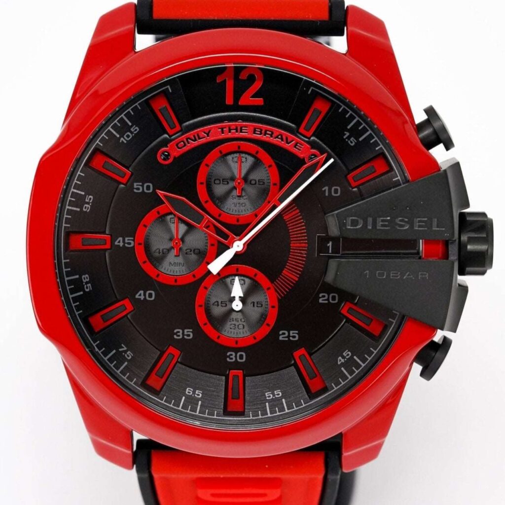 Montre chronographe Diesel DZ4526 Mega Chief rouge pour homme