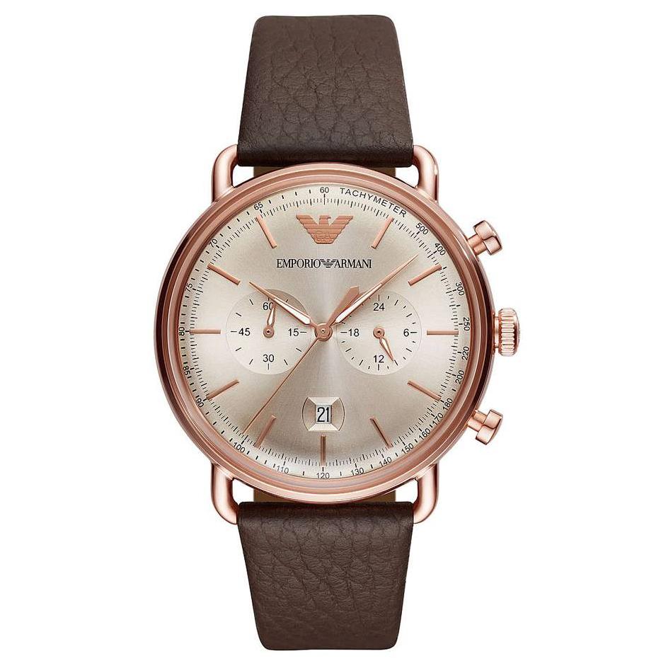- Montre Emporio Armani AR11106 pour homme, bracelet en cuir marron, style aviateur