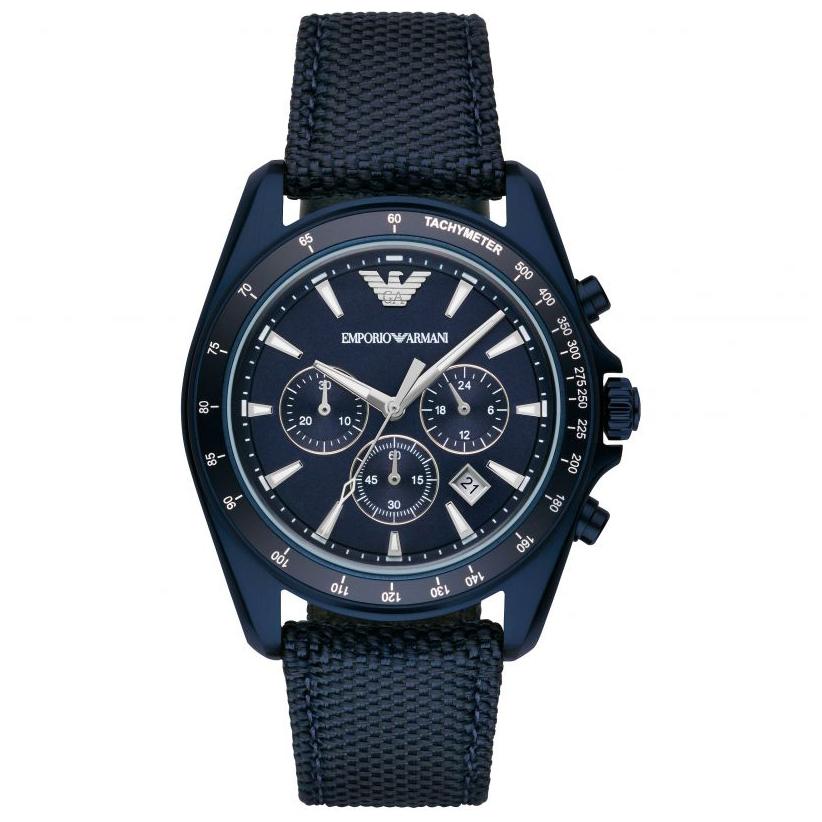 - Montre chronographe Emporio Armani pour homme, bracelet en tissu bleu, référence AR6132