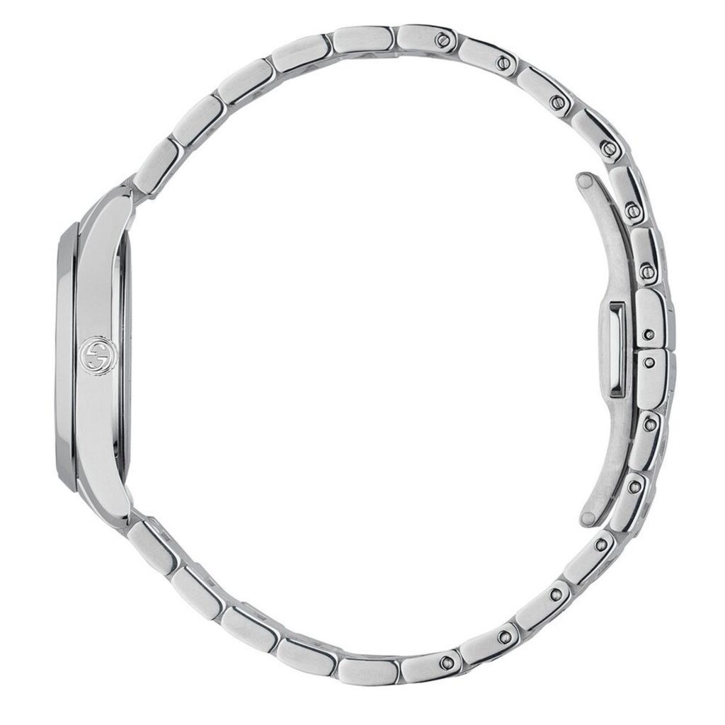 - Présenté sur un bracelet en acier inoxydable brossé et poli