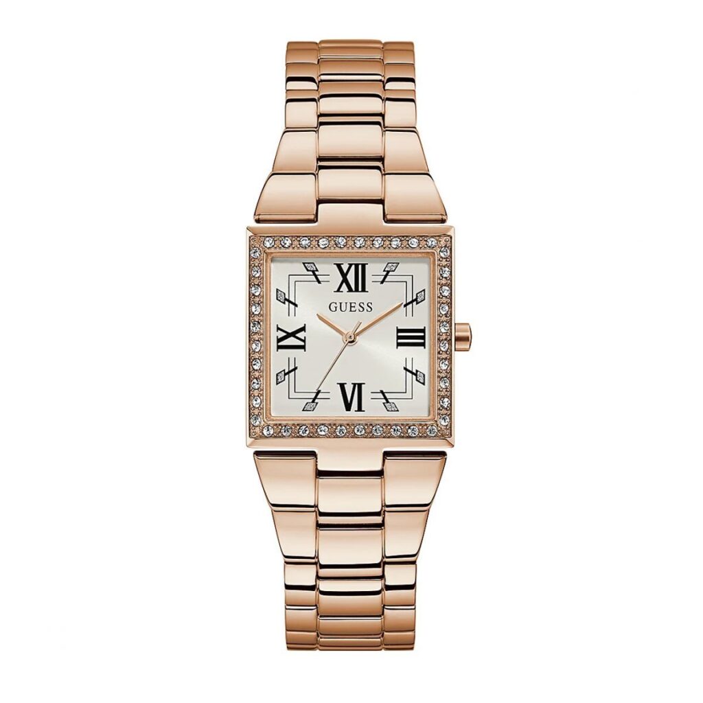 Boîtier en acier inoxydable PVD or rose 28/30 mm x 13 mm. Lunette sertie de zirconium.