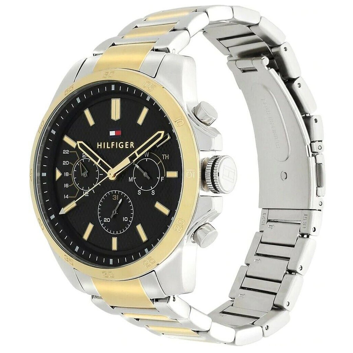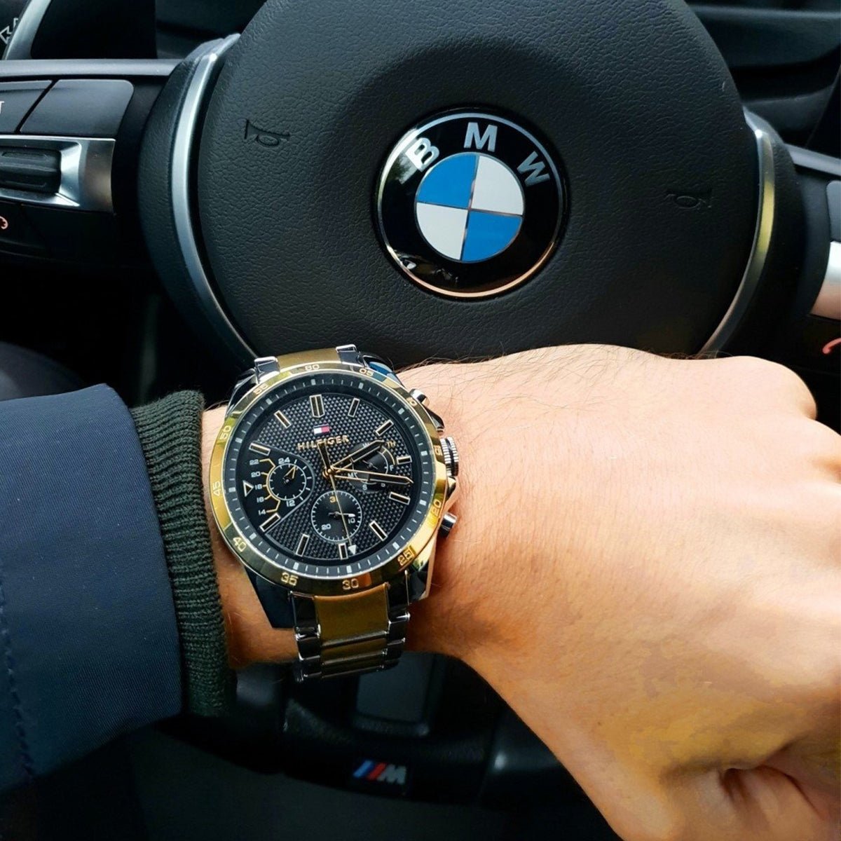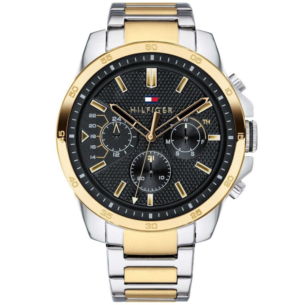 The American Icon. This bold watch features a 46mm two-toned case, complimented with a Black semi-gloss multi-function dial. Other notable features of this signature style include the “diamond†textured dial with bold hour markers, crown protector and iconic bezel.