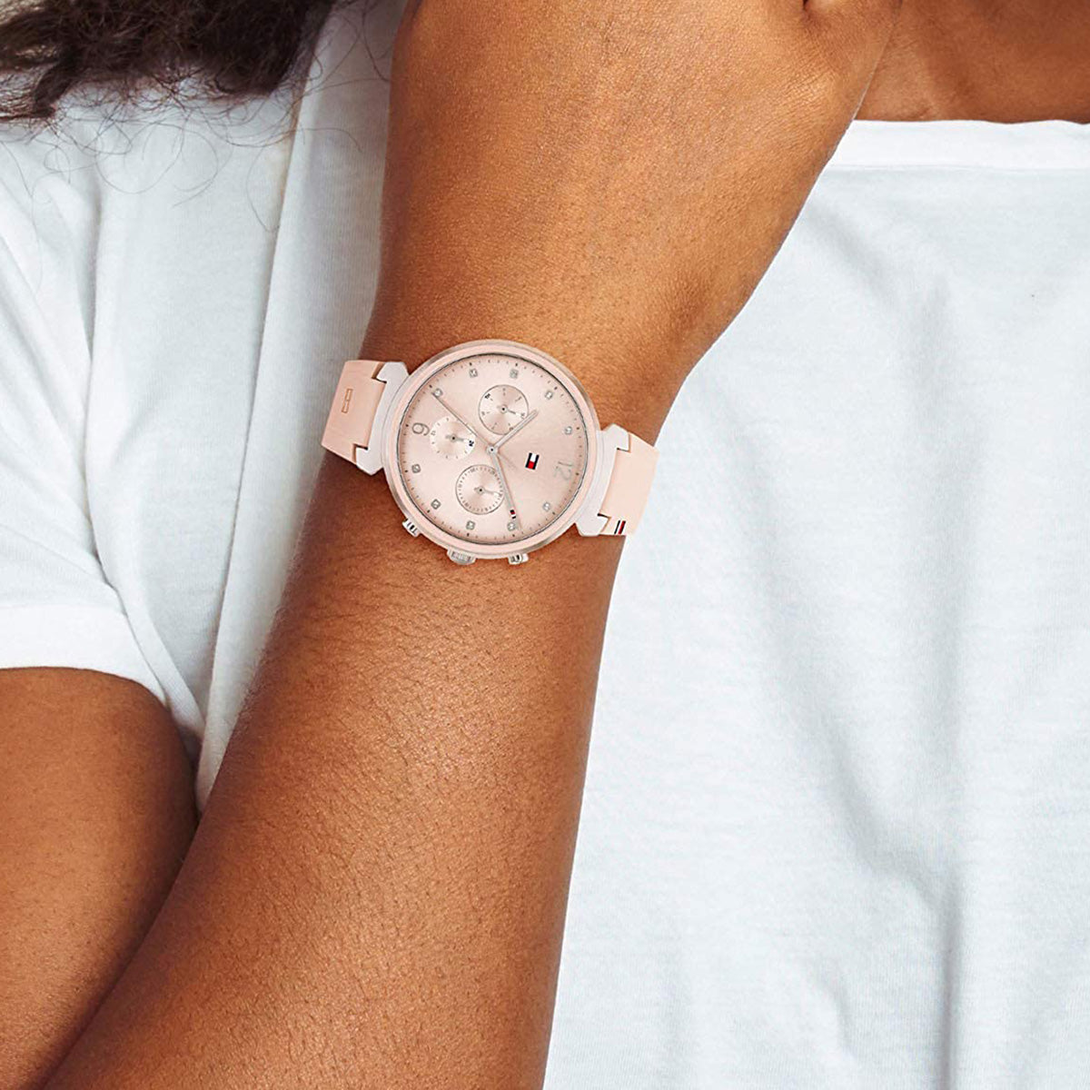 Une montre sport élégante et raffinée, revisitant les classiques avec la touche Tommy Hilfiger. Son boîtier de 38 mm abrite un cadran multifonction soleillé avec index en cristal poli. Disponible en acier inoxydable, or œillet, plaqué or et bicolore. Bracelet à maillons ou bracelet en silicone. Étanchéité : 3 ATM / 30 mètres.