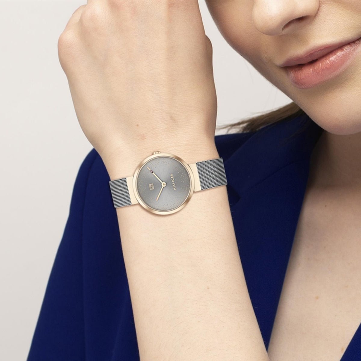 Forme et fonction s'unissent harmonieusement dans cette montre élégante et raffinée, dotée d'un cadran aux détails délicats. Des touches féminines, comme des motifs floraux ou scintillants et de fines aiguilles ornées du logo Tommy, lui confèrent une allure unique. Boîtier de 32 mm sur bracelet maille, facile à porter en toutes circonstances.
