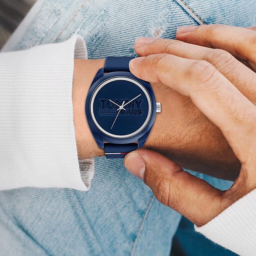 Pour les journées actives et élégantes, optez pour cette montre dotée d'un boîtier et d'une lunette en thermoplastique TR90 bleu et d'un bracelet en caoutchouc bleu marine ton sur ton.