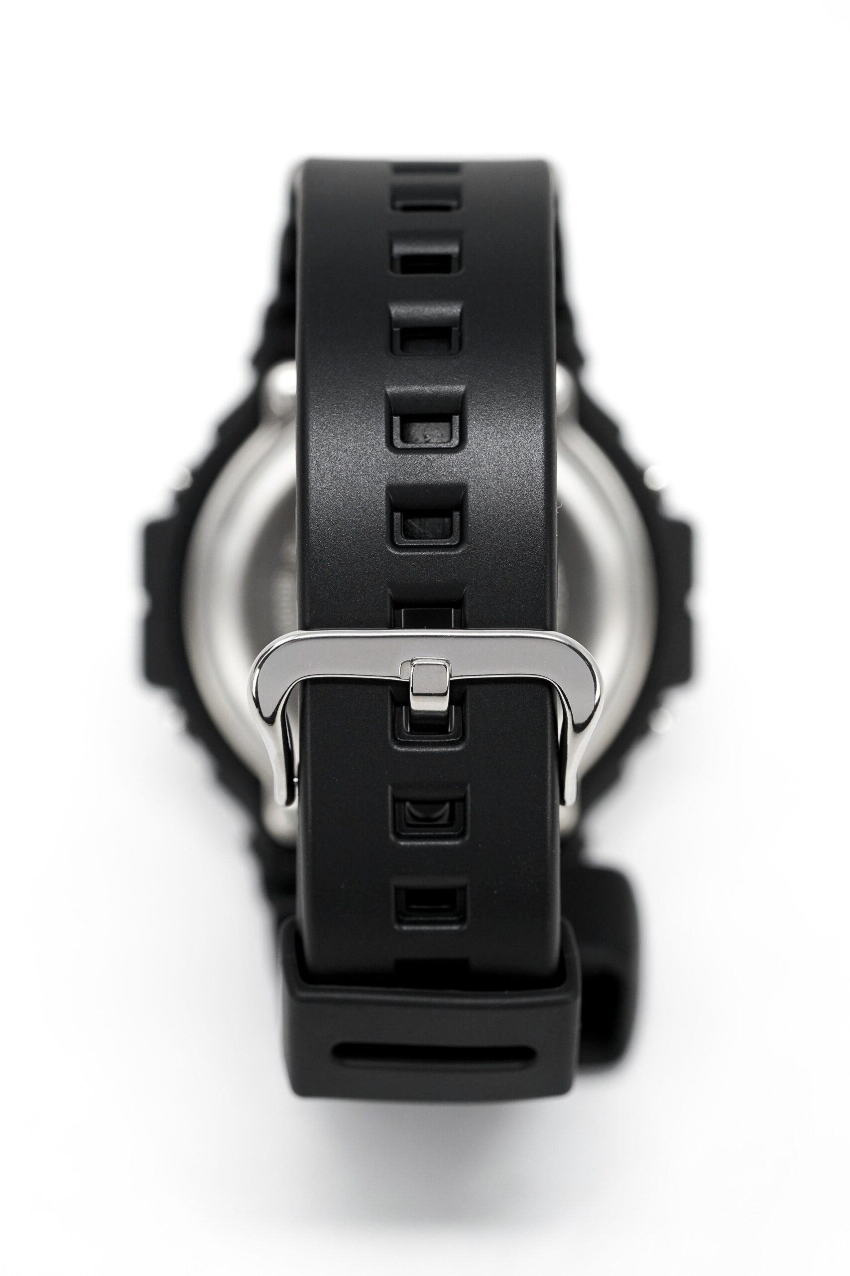 51.4mm x 46.8mm x 15.5mm Matte Black Resin and Stainless Steel Case. Characteristic Shock-Proof Case with Easy to Press Button Arrangement