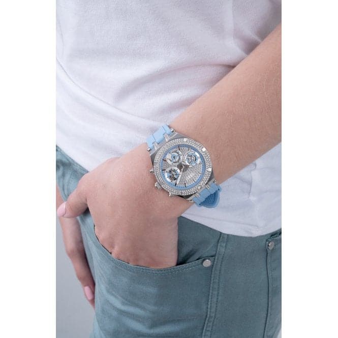 One of the most striking features of this watch is its ice blue silicone strap, offering both comfort and durability. Crafted from high-quality silicone, the strap is not just visually appealing but also practical for everyday wear. Whether you’re dressing up for a special event or enjoying a casual outing, this watch adapts beautifully to any ensemble.