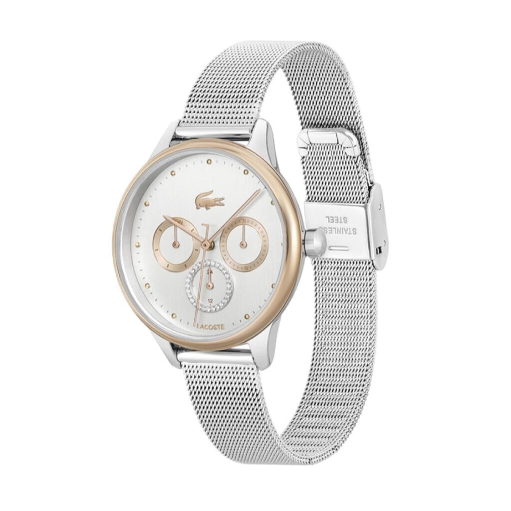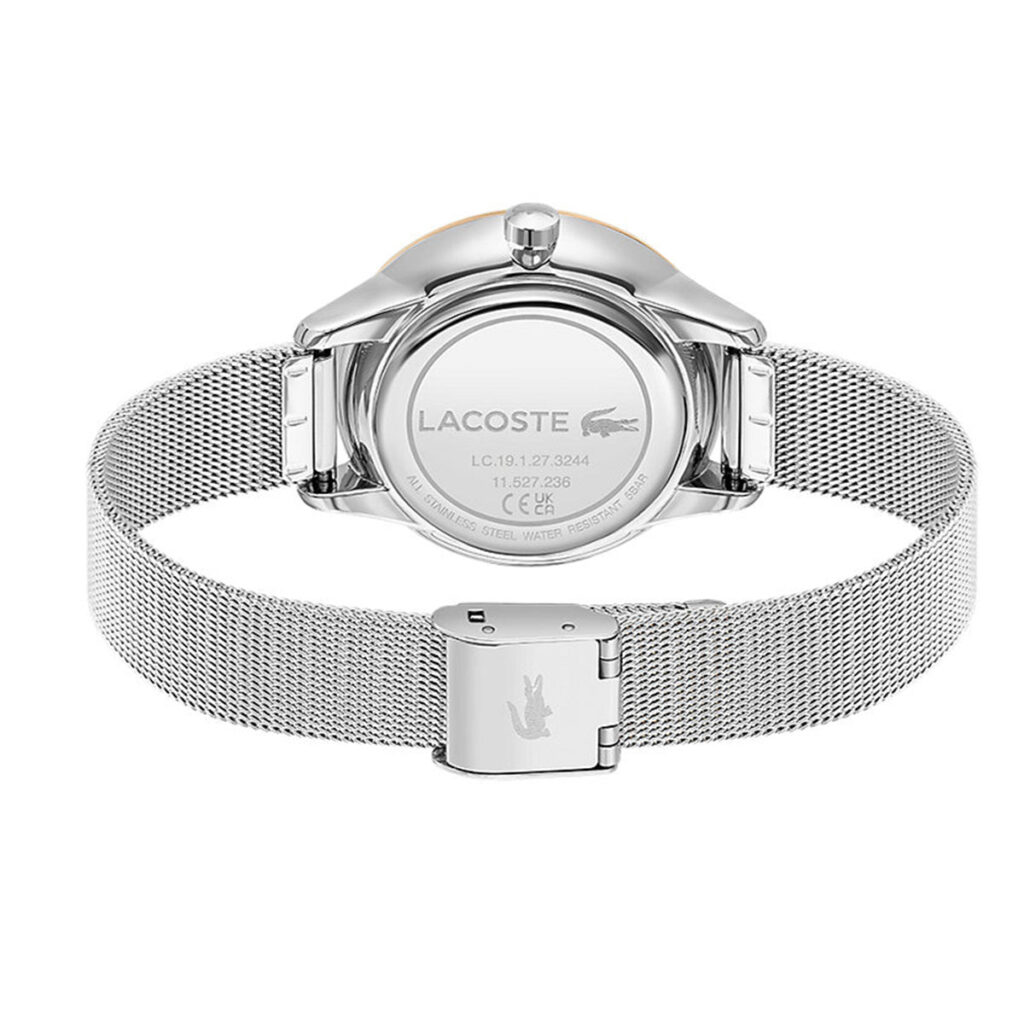 Lacoste Birdie 2001204 is an incredible interesting Ladies watch from Birdie collection. Case is made out of Stainless Steel, which stands for a high quality of the item and the Silver dial gives the watch that unique look. This model has got 50 metres water resistancy – it can be submerged in water for periods, so can be used for swimming and fishing. It is not recommended for high impact water sports.