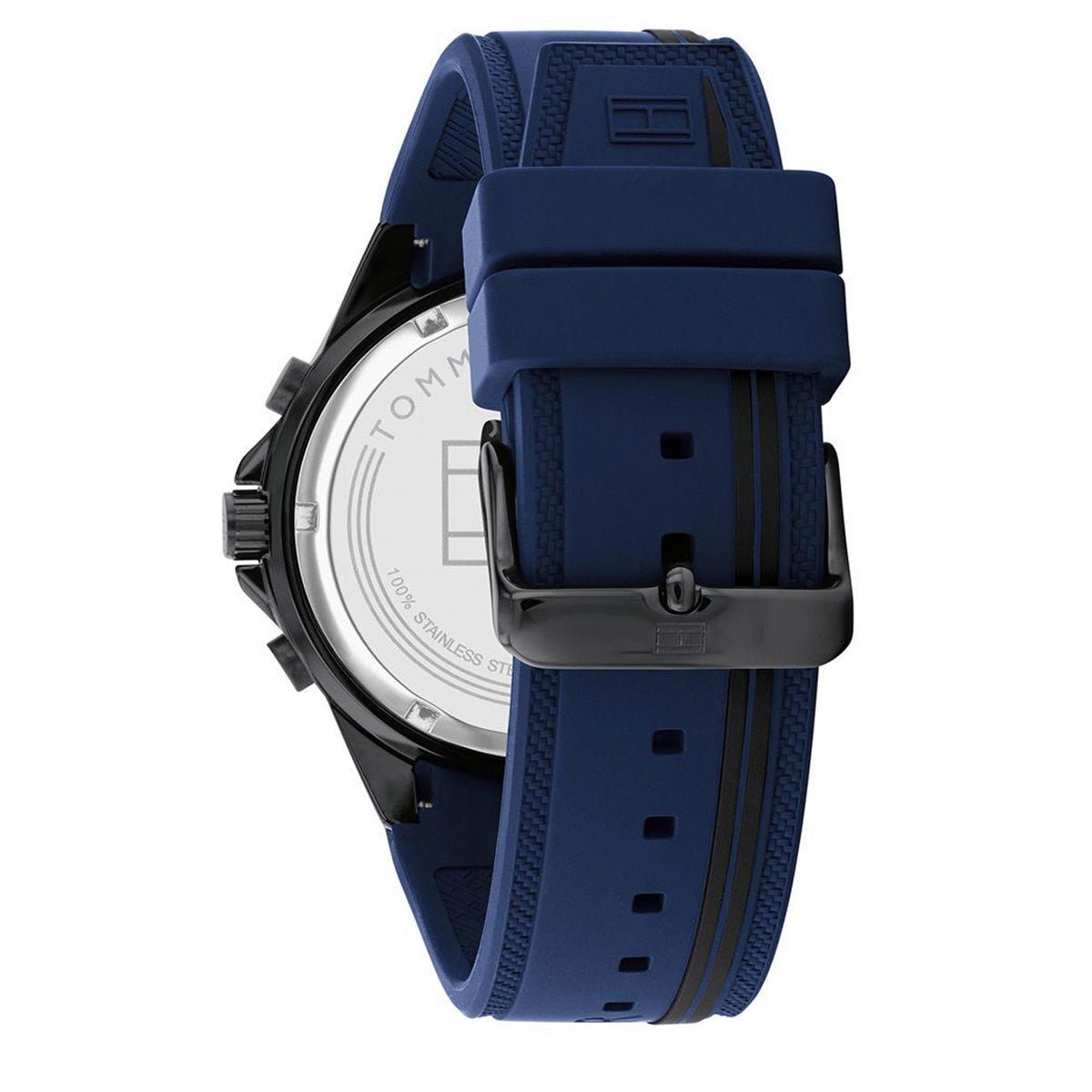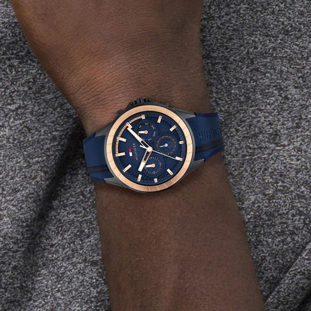 This collection features an elevated sport interpretation with iconic brand elements. With a 44MM case, the faux carbon fiber texture dial features a multifunction movement and classic Tommy details. Fixed on integrated bracelets and silicone straps. 5 ATM/ 50 Meters.