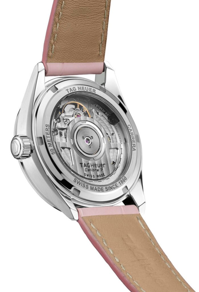 TAG Heuer Watch Carrera Ladies WBN2315.FC8331. Discover the TAG Heuer Carrera Date, featuring a captivating mother-of-pearl dial with a pink gradient track and diamond flange. This luxurious timepiece combines refined materials with a distinctive allure.