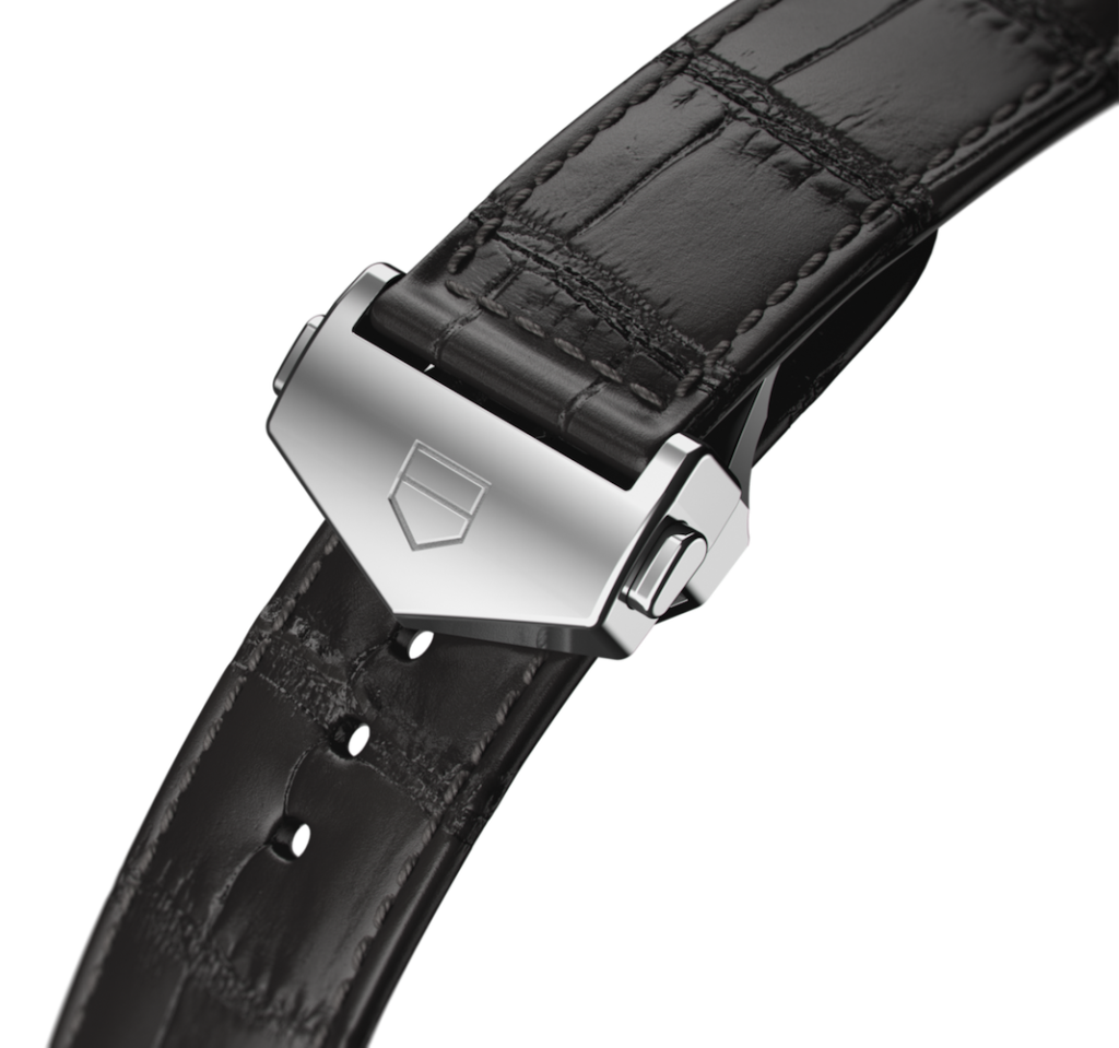 Renowned for their highly accurate and powerful movements, TAG Heuer have equipped this TAG Heuer Carrera watch with one of their famous Swiss made self-winding calibres. The Calibre 5 automatic movement brings to life the hour, minute and seconds function and a day date window at 3 o clock on a mesmerising black concentric pattered dial with rose gold plated hands coated in Superluminova and rose gold plated indexes. Housing the dial is sapphire crystal glass known for its scratch resistance and crisp legibility alongside a 41mm stainless steel case and exhibition case back. For one final touch of sophistication, this TAG Heuer Carrera watch for men is fitted with a black alligator leather strap and a stainless steel folding buckle.