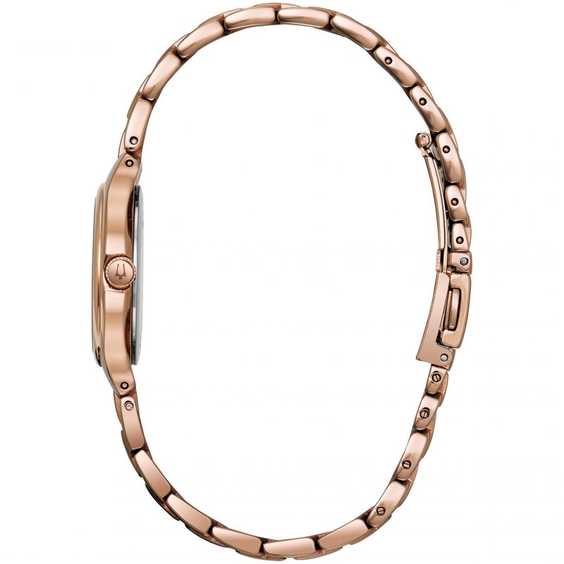Bulova DRESS 97L151 is an amazing and eye-catching Ladies watch. Case material is Stainless Steel and the Salmon dial gives the watch that unique look. This watch is market as water resistant. It means it can withstand slight splashes and rain, but is NOT to be immersed in water. We ship it with an original box and a guarantee from the manufacturer.