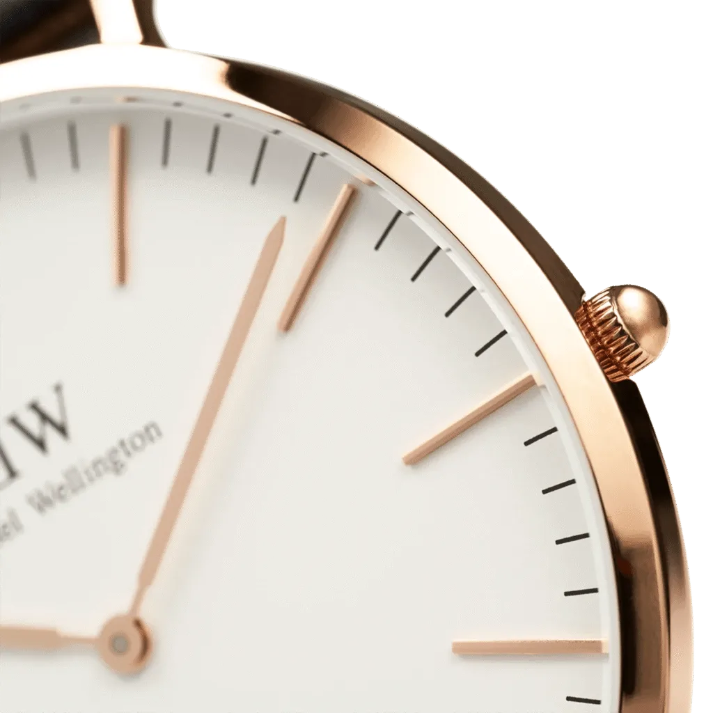 The Daniel Wellington Classic Bristol Men’s Brown Watch DW00100009 is a testament to refined elegance and modern simplicity. Part of the renowned Classic Collection, this timepiece features a clean white dial paired with a rich dark brown leather strap, creating a versatile accessory that complements both casual and formal attire. The rose gold-tone stainless steel case adds a touch of luxury, while the minimalistic design ensures it remains timeless. Powered by a reliable Japanese Quartz movement, this watch combines functionality with style. The interchangeable strap feature allows for personalised customisation, making it a perfect choice for the modern gentleman.