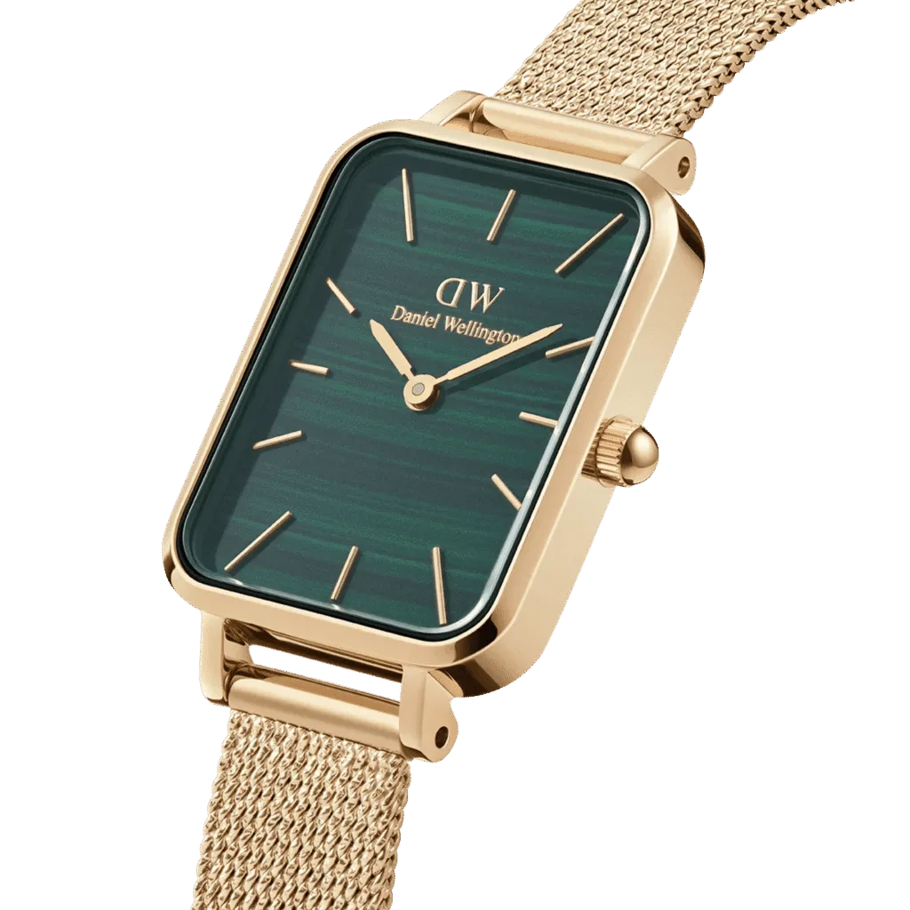The Quadro. Made from polished stainless steel and offered in a bright silver finish or a sophisticated rose gold plating. Select from pressed mesh or pressed leather straps, and choose a dial with patterns in white, black, or green. Give your appearance a distinctive edge.