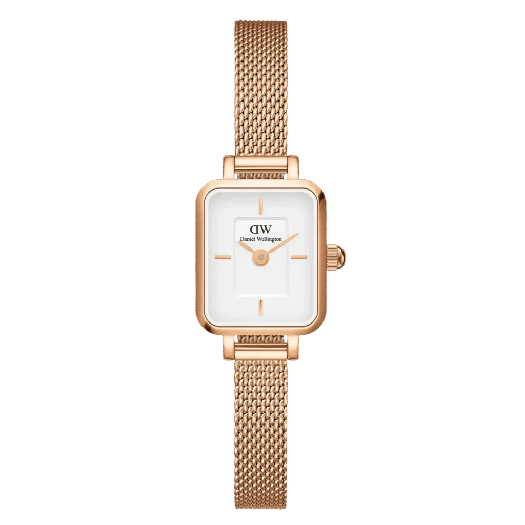 The Quadro Mini, which was created at the nexus of jewelry and watches, is a fascinating device. With two index markers for a minimalist appearance and a compact champagne Quadro dial with a sophisticated sunray finish, this is our smallest watch to date. The fabric-like mesh bracelet has the dainty charm of an elegant bracelet, but it can be switched out, giving the piece even more versatility. Similar to the majority of our timepieces, this one is made of sturdy 316L stainless steel and has a superior gold plating. So, enjoy it as a beautiful piece of jewelry and wear it as a watch!