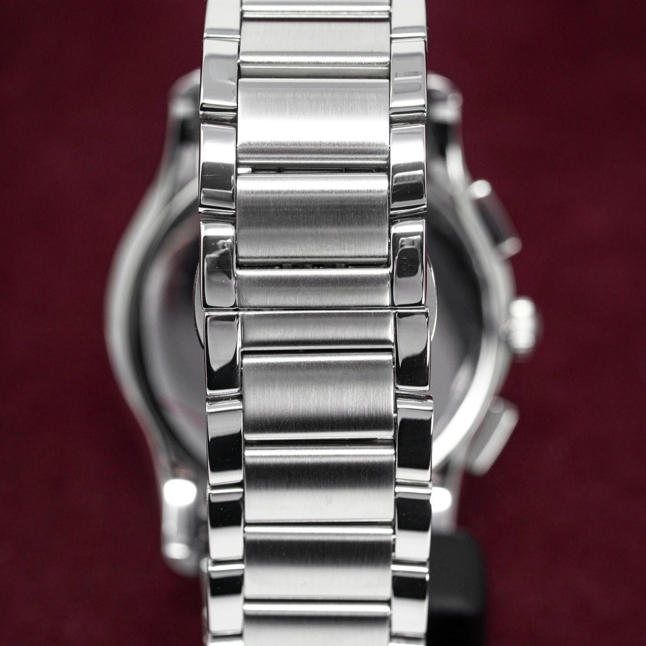 Black Dial. Stainless Steel Hands and Indexes. Date between 4 and 5 O’Clock.