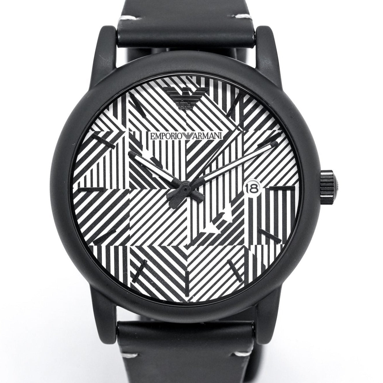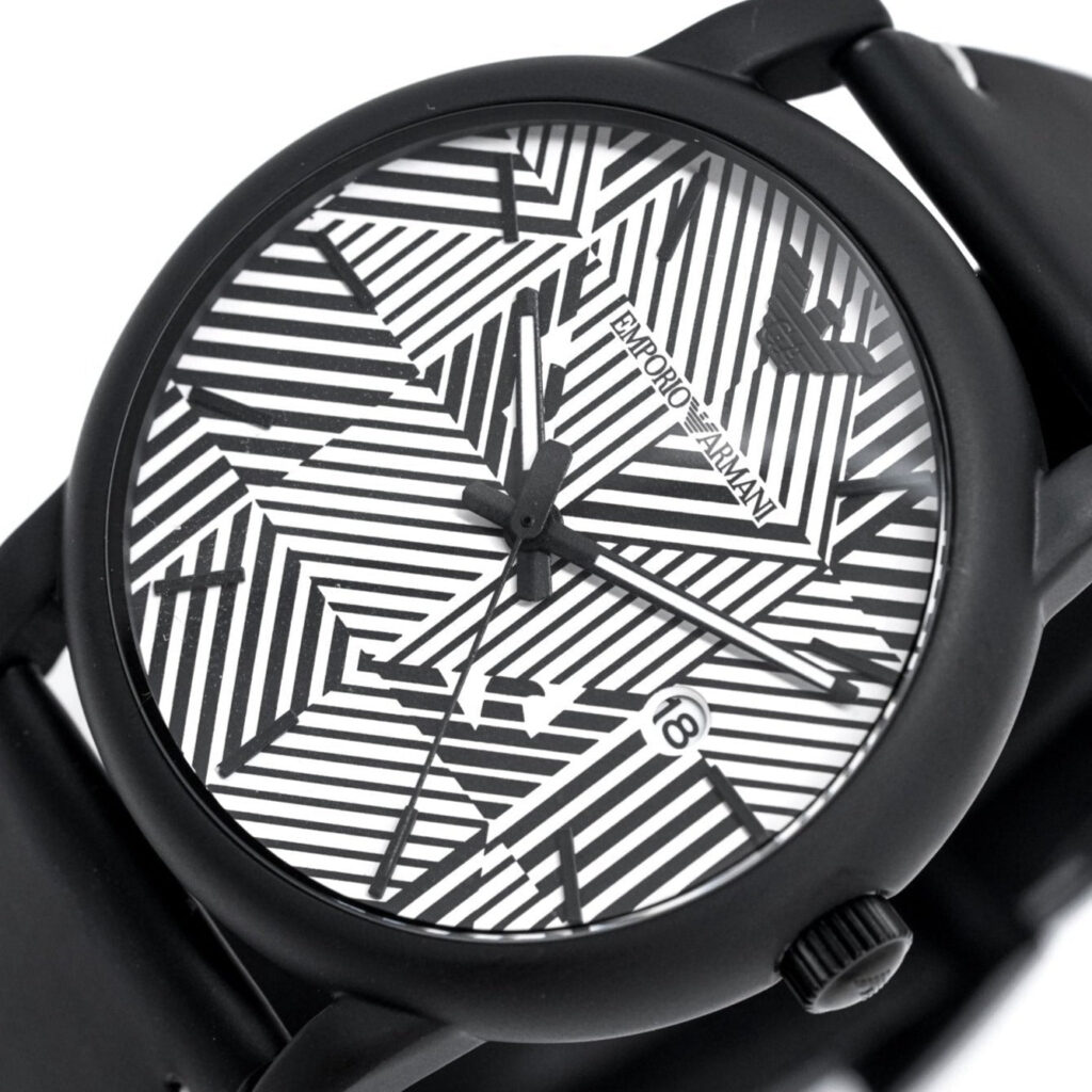 Black and White Textured Dial. Black and White Hands and Indexes. Date Window at 3 O’Clock