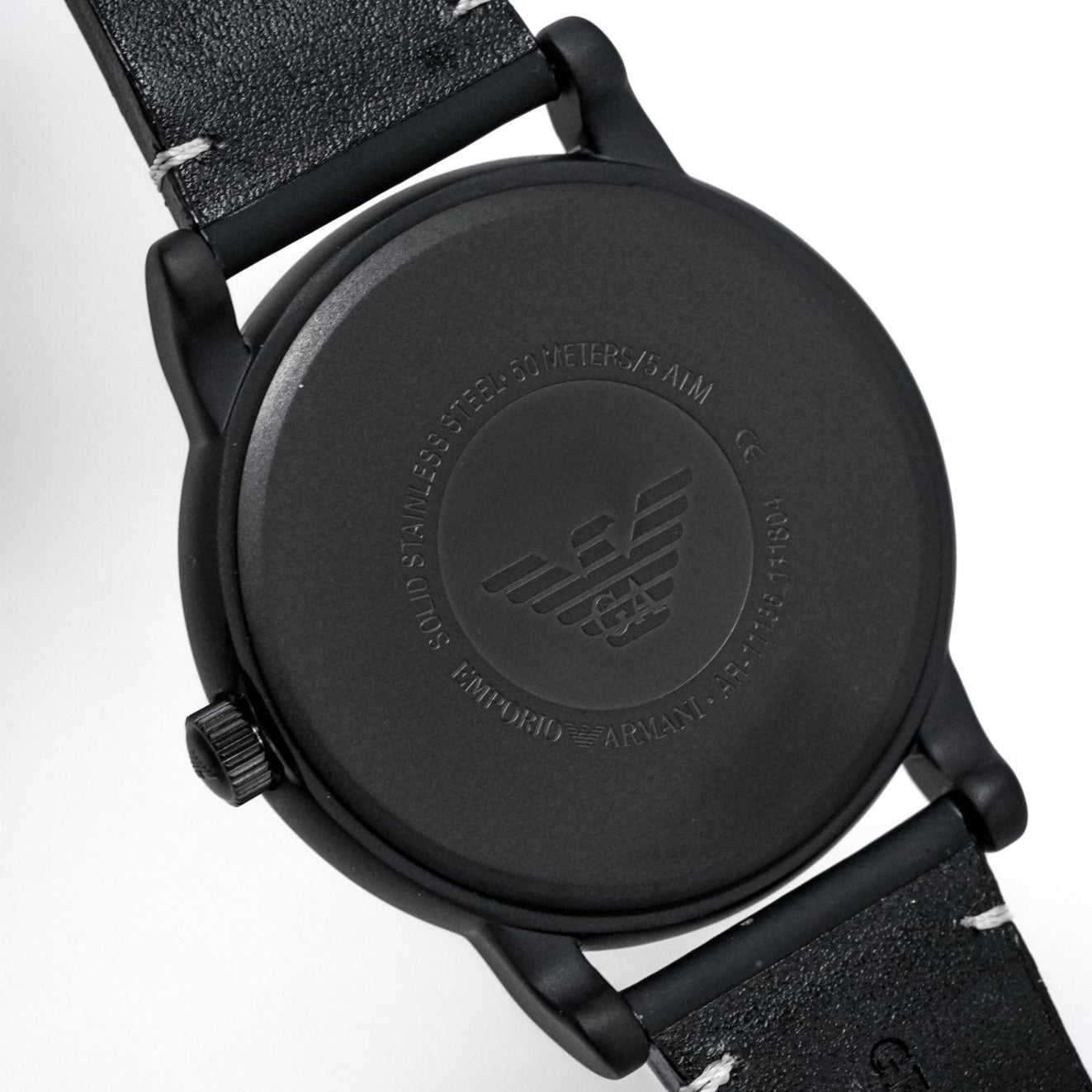 43mm x 9.5mm Black PVD Plated Stainless Steel Case. Solid Caseback.