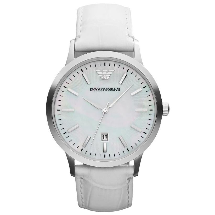 - Ladies Mother of Pearl White Leather Strap Emporio Armani Watch AR2465