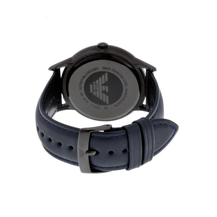 Style and simplicity are hallmarks of this fine timepiece from Emporio Armani watch. This watch is provided with a quartz movement and the watch case is made of black stainless steel and has a black colored dial. The case has a size of 43mm. The bracelet is made of embossed black leather. The watch is designed with a buckle. It features classic shapes and proportions with clean styling and subdued, refined colors.
