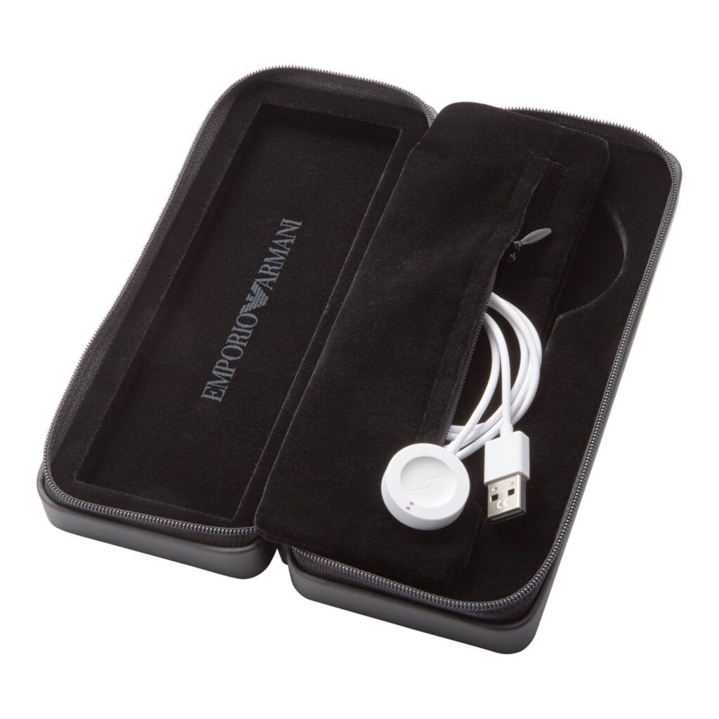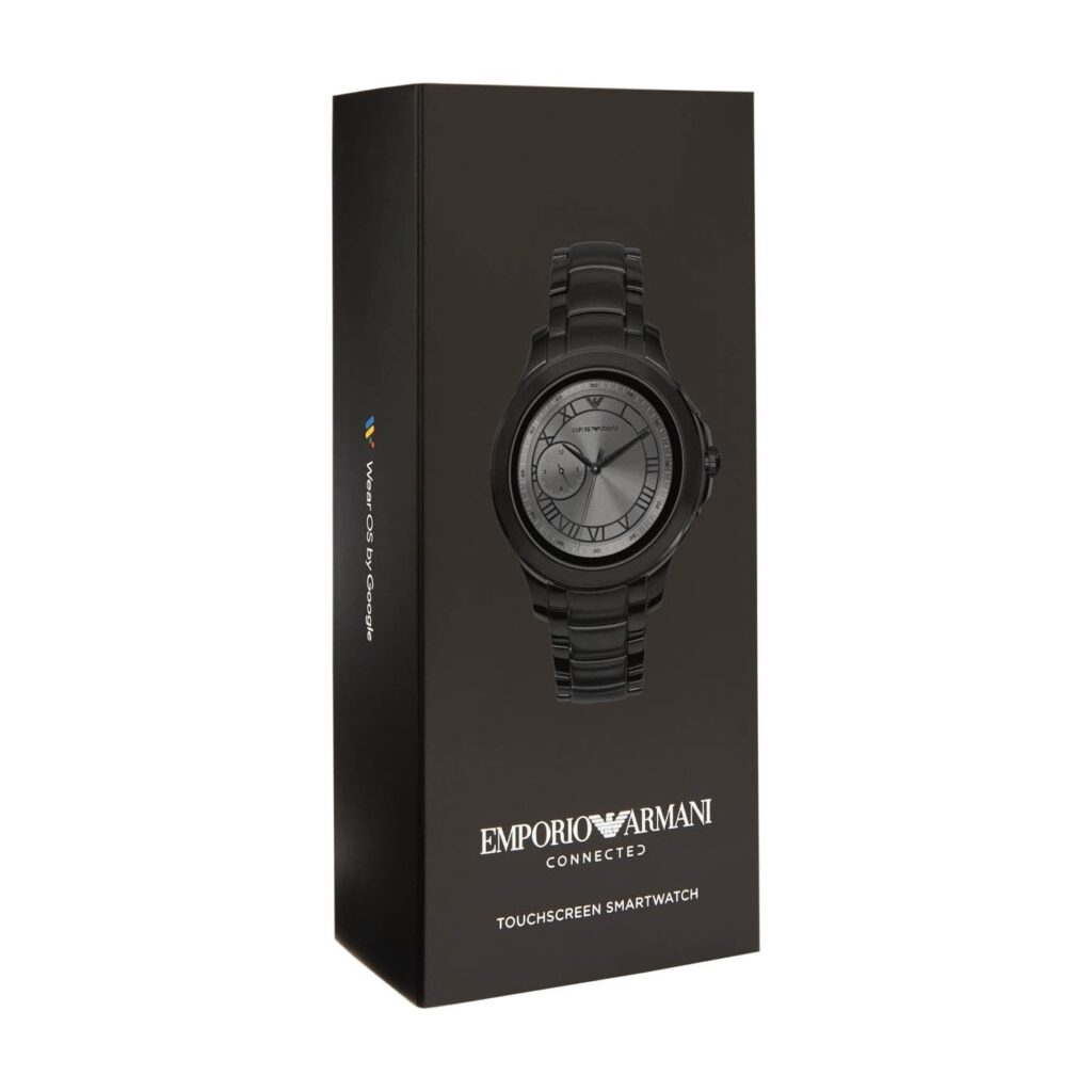 The dynamic styling of Emporio Armani meets technology with a new collection of touchscreen smartwatches. This watch features the brand’s most coveted designs with the added benefits of today’s wearable technology. The Emporio Armani Connected touchscreen smartwatch is compatible with both iOS® and AndroidTM phones, and are powered with WearOS by GoogleTM and the Qualcomm® Snapdragon WearTM 2100 smartwatch platform. Stay in the know with messages and notifications delivered directly to your watch and stay in style with a customizable watch face and interchangeable straps that can be changed to match your look. Connect to your favourite apps to track activity and access your music library.