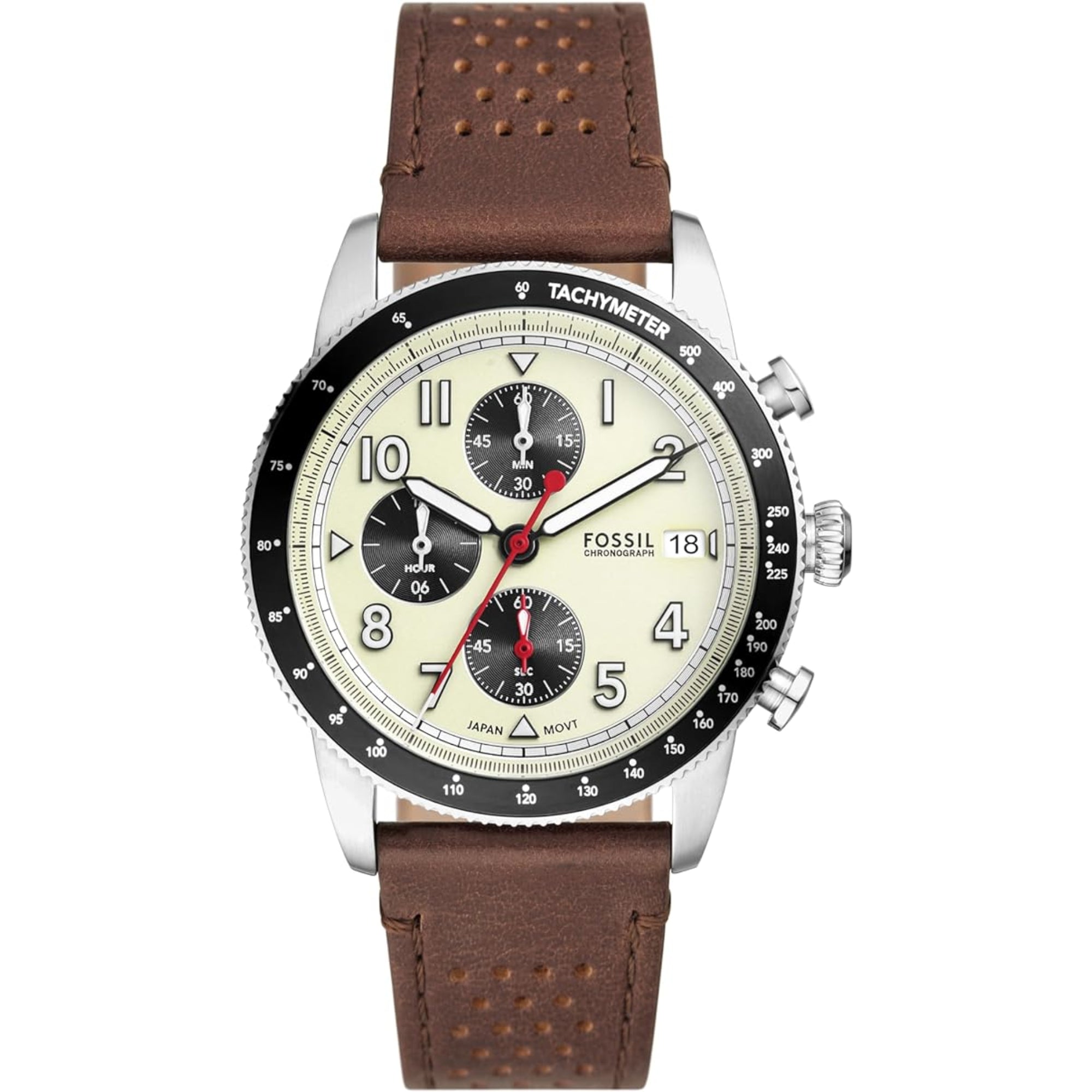 Fossil Sport Tourer Chronograph Brown Leather Strap Cream Dial Men’s Watch FS6042