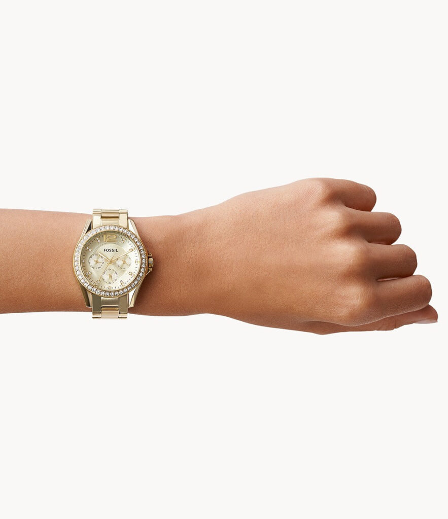 Fossil Watch Riley Ladies. Fossil was the first American brand to bring value and style to the watch category transforming the concept of timekeeping from the merely functional to chic and stylish must haves for the wrist. Since then, Fossil has always been in the avant garde, whether in terms of technology, the choice of materials or design. A distinctive modern vintage design aesthetic defines the Fossil brand, fusing elements of vintage creative culture, Mid Century Modern design, and contemporary fashion. Supplier Model Number ES3203