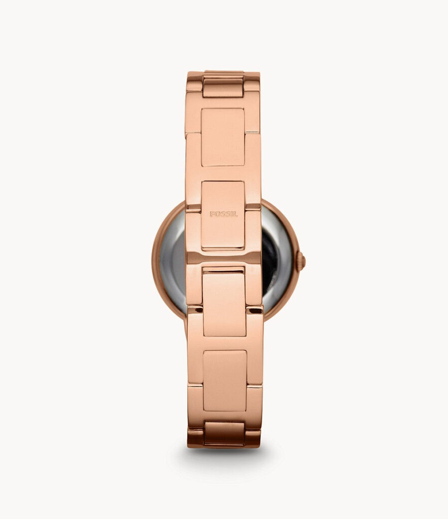 Fossil Watch Virginia Ladies ES3284. Fossil was the first American brand to bring value and style to the watch category transforming the concept of timekeeping from the merely functional to chic and stylish must haves for the wrist. Since then, Fossil has always been in the avant garde, whether in terms of technology, the choice of materials or design. A distinctive modern vintage design aesthetic defines the Fossil brand, fusing elements of vintage creative culture, Mid Century Modern design, and contemporary fashion.