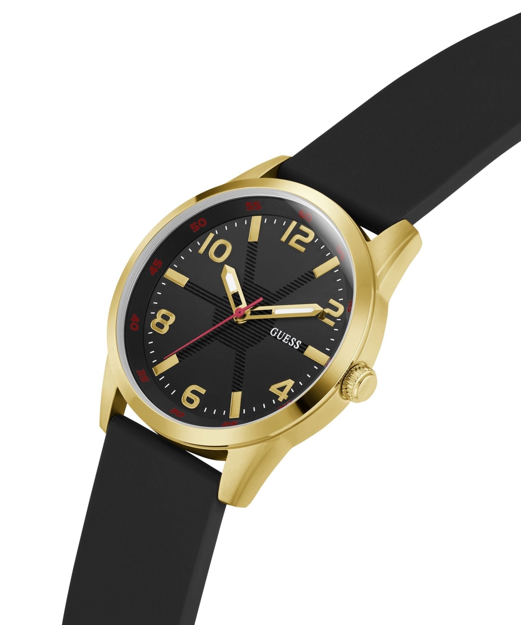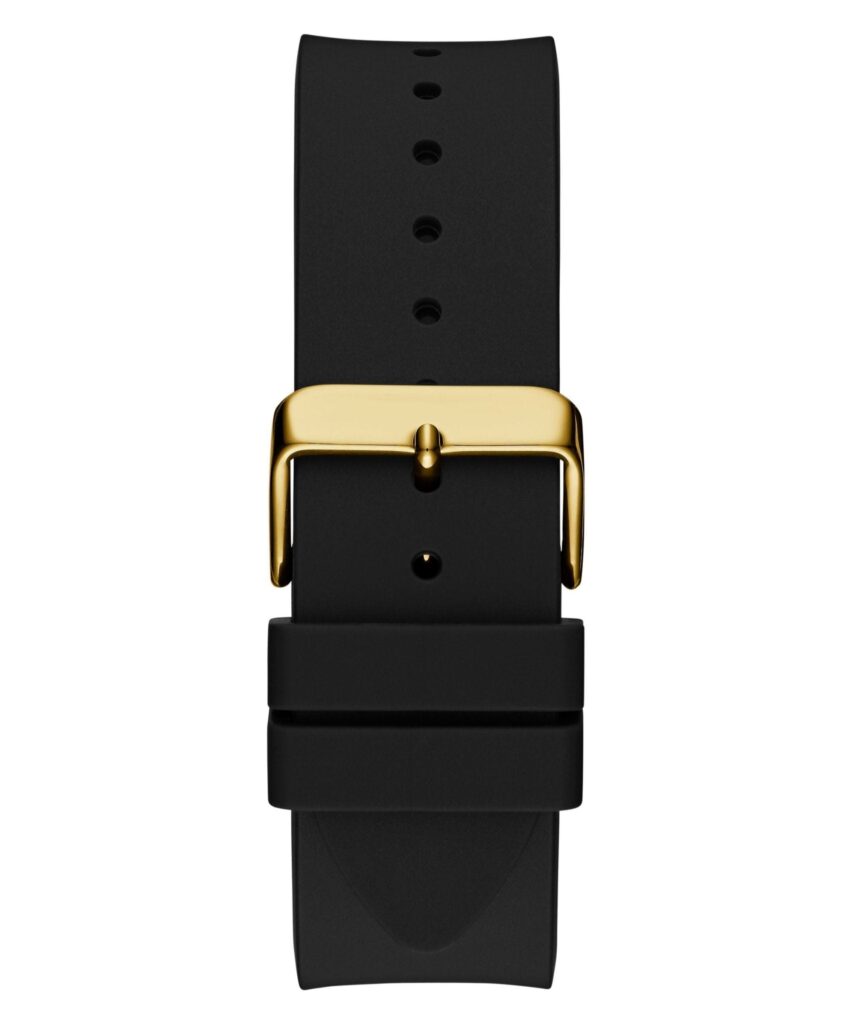 Each Gents Monte Gold Tone Silicone Watch is presented in exquisite Guess packaging, complete with a gift bag, box, and a certificate of authenticity. Enjoy peace of mind with a two-year warranty against manufacturing and material defects. Elevate your collection with this luxurious watch that embodies craftsmanship, style, and sustainability.