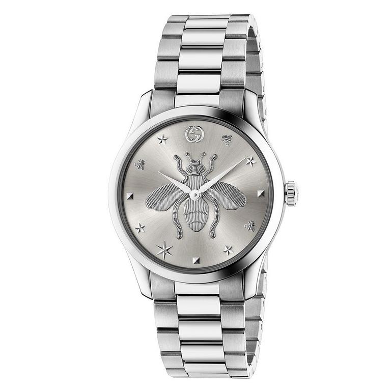 - Silver tone dial with the Gucci bee in the centre
