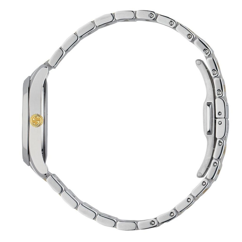 - Presented on a two tone gold PVD and stainless steel bracelet