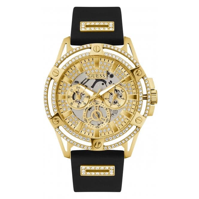 Experience timeless elegance with the stunning Guess Gents King Stainless Steel Gold Watch GW0537G2. This luxurious timepiece from Guess combines modern design with classic sophistication, making it the perfect accessory for any occasion. With its all-over cut-thru details, this watch stands out distinctly while maintaining an air of refinement.
