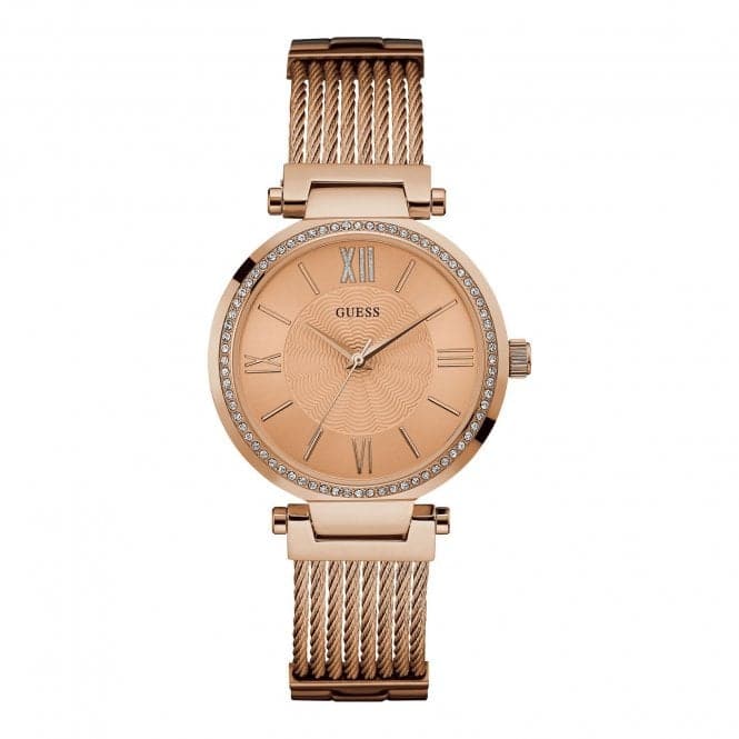 Guess Ladies Rose Gold Watch Wire Bracelet W0638L4