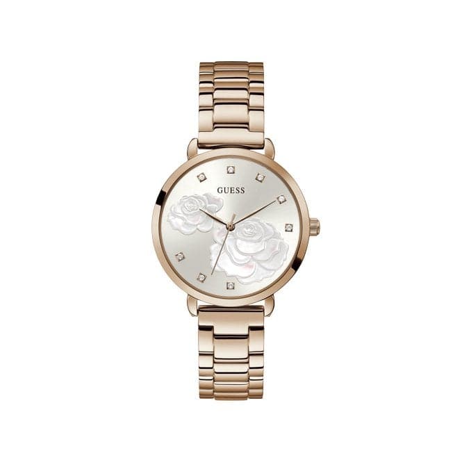 Guess Watches Ladies Rose Gold Sparkling Rose Steel Floral Print Watch Gw0242l3