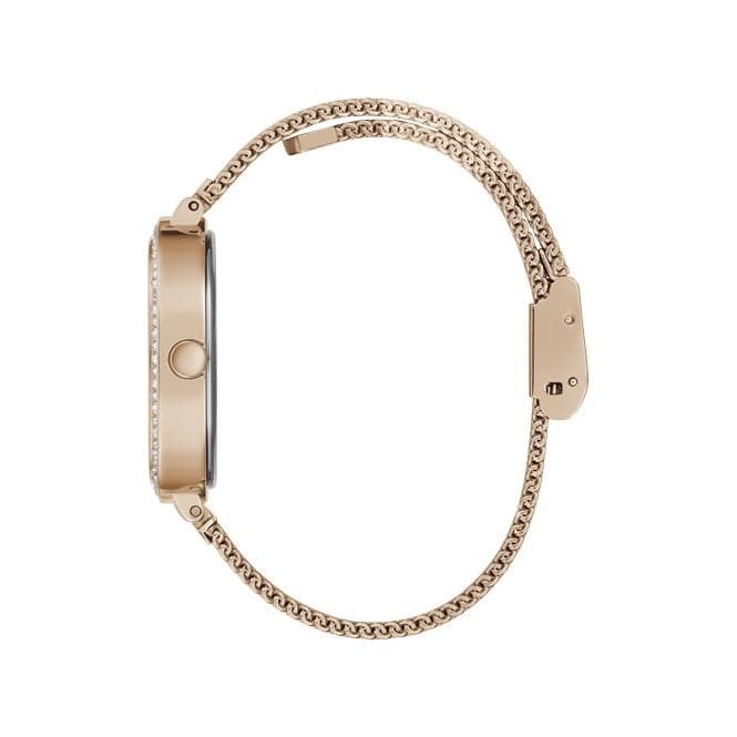 Your Guess Tapestry Ladies Trend Rose Gold Stainless Steel Watch GW0354L3 arrives perfectly packaged in a luxurious box, making it an excellent choice for personal indulgence or as a thoughtful gift for someone special. Elevate your accessory game with this exquisite timepiece, and experience the perfect harmony of elegance and functionality.