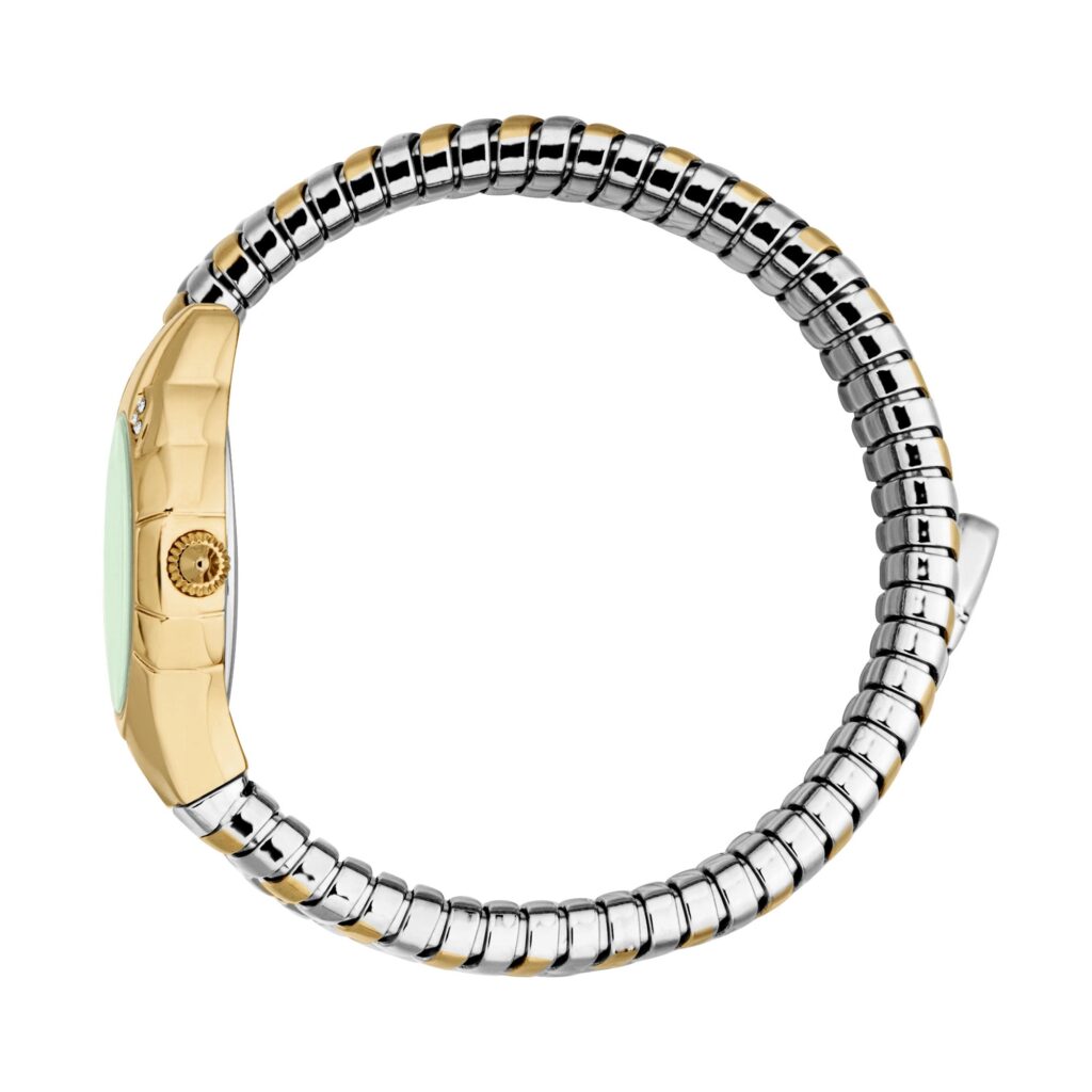 Illuminate the vibrant bottle green dial in polished yellow gold and silver finishes with the rhythmic play of light on the brilliant stones with a sophisticated and metropolitan character. Essential lines and reflections that enhance the wrist, designed for dynamic city life, exclusive evening galas and elegant sunset cocktails with a distinctive touch that defines every look.