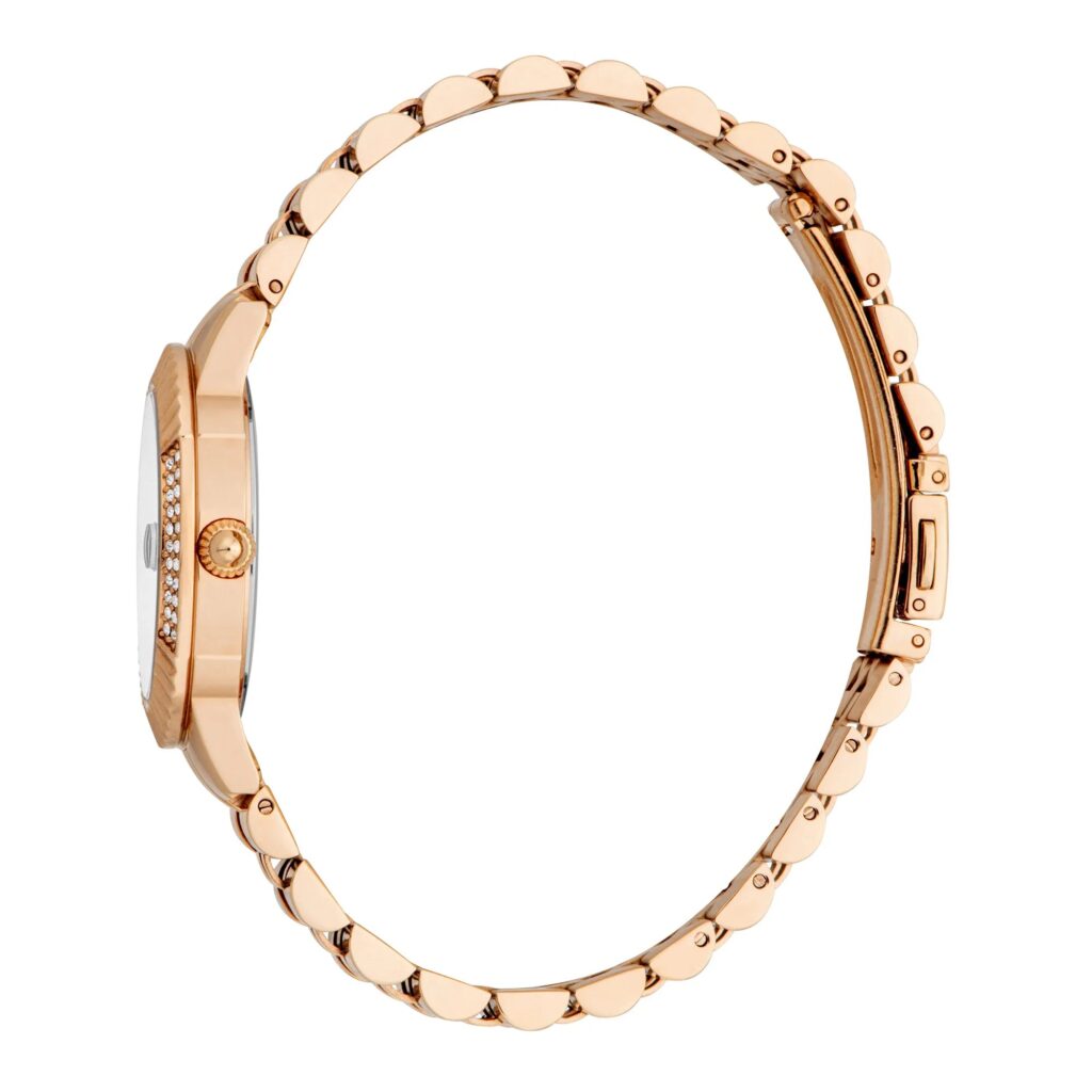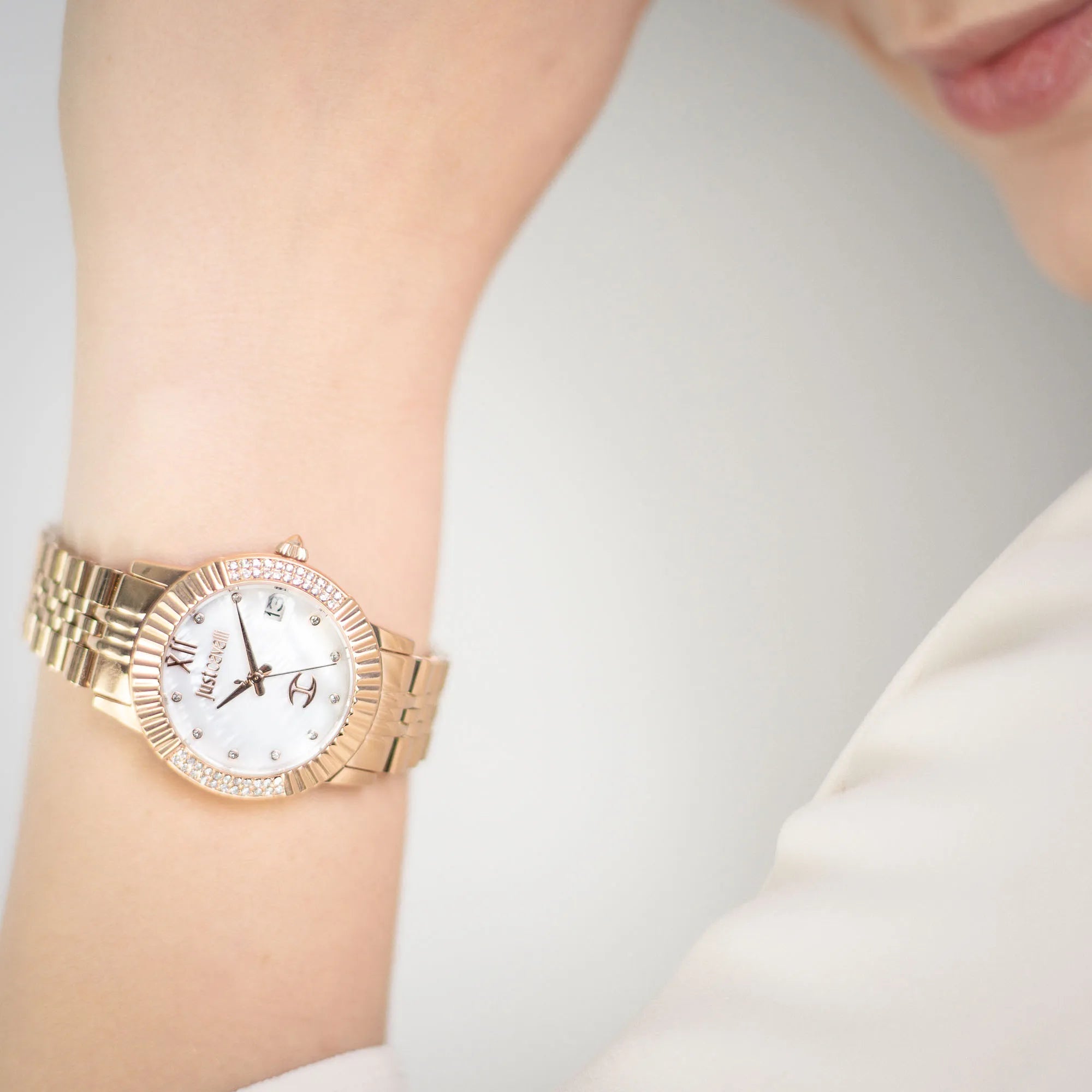 Ignite the senses with a luminous blend of rose gold and mother of pearl, featuring delicate zircons that shimmer like fleeting moments of elegance. Soft textures and a refined finish evoke a luminous glow, inviting touch and movement. The sleek, round silhouette dances with light, capturing the essence of femininity and urban sophistication. Designed to elevate your style, it promises to turn every occasion into a statement of effortless chic.