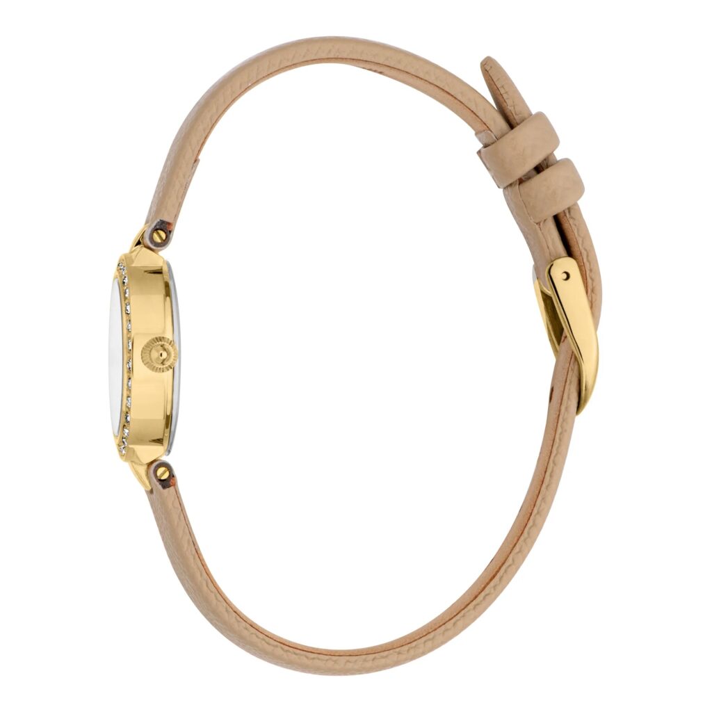 Ignite a sophisticated allure in soft beige leather with shimmering zircon accents, capturing the subtlety of light against a warm gold-tone case. The smooth texture invites a delicate touch, while the luminous dial evokes a sense of effortless elegance. With its refined movement, this piece exudes a graceful movement that whispers confidence and style. Crafted for those special moments when you want to leave a lasting impression, it defines a chic, versatile lifestyle with a touch of understated glamour.