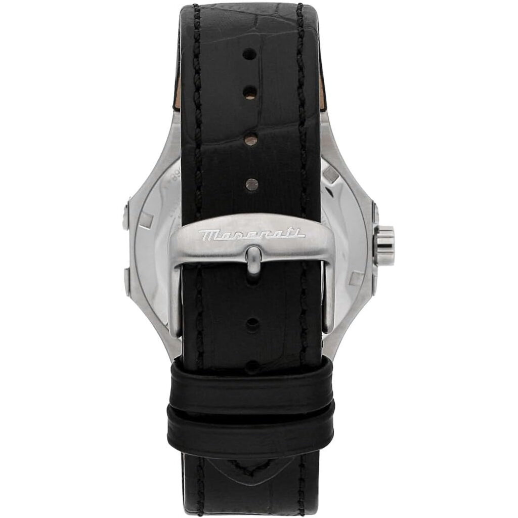 The Maserati R8821108001 is a luxury men’s wristwatch from the renowned Italian automotive brand Maserati. This timepiece features a sophisticated design with a stainless steel case, a black dial, and elegant chronograph sub-dials. It combines the brand’s signature style and high-performance engineering, making it a statement accessory for those who appreciate both luxury and precision. The watch is typically equipped with a durable leather or stainless steel band and is water-resistant, embodying Maserati’s commitment to excellence and elegance.