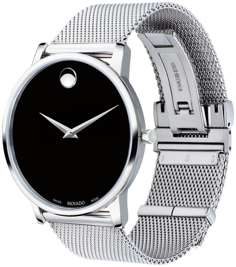 Movado Watch Museum Mens 0607219. This long, rich heritage of artistry and innovation in design, and a close, enduring association with the arts continue to define the Movado watches brand identity. Always in motion, Movado creates modern watches of exceptional craftsmanship and design distinction.