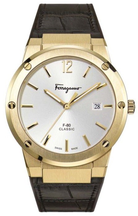 The new F-80 Classic collection comes with a slimmer and smaller case. Its sport-luxury spirit has made it a bestselling Salvatore Ferragamo Timepieces line. Operated by a quartz movement and safeguarded by a sapphire glass, the silver round dial is encased in a stainless steel case. Moreover, it is fitted with a deployment buckle clasp that ensures a secure fit on the wrist.