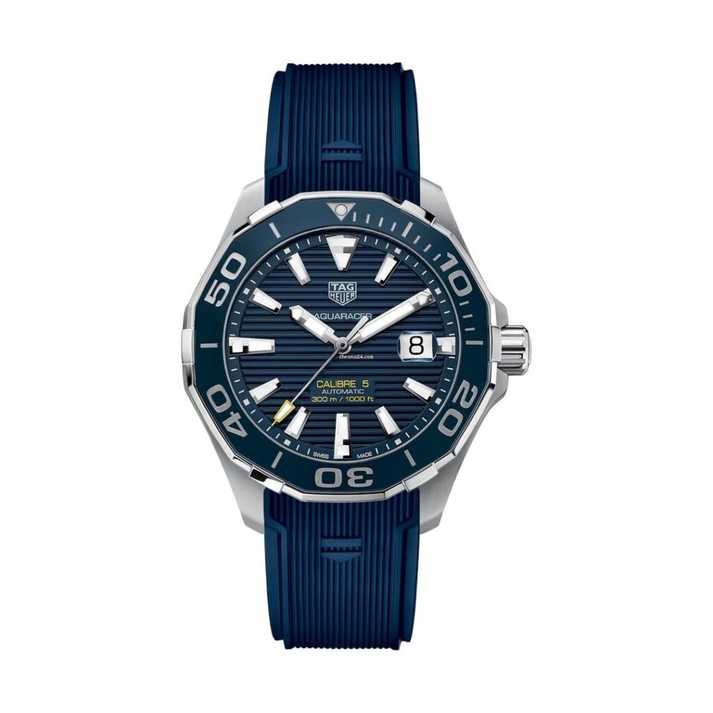 Powered by the TAG Heuer Calibre 5 automatic movement, the WAY201B.FT6150 offers reliable timekeeping and a power reserve of approximately 38 hours. The watch is protected by a scratch-resistant sapphire crystal with an anti-reflective coating, ensuring both durability and clarity. The blue rubber strap not only enhances the watch’s sporty appeal but also provides comfort and flexibility, making it ideal for both underwater adventures and daily wear.