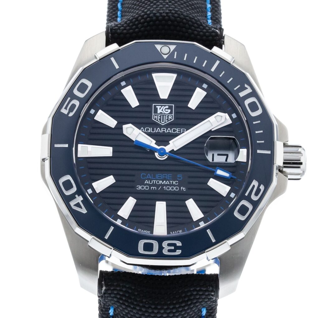 When used every day, it will be made abundantly clear that this robust TAG Heuer Aquaracer Calibre 5 WAY211B.FC6363 Men’s Automatic Watch model is built for speed, endurance, and audacity. One of the aspects that stand out visuall is the all-royal blue rotating bezel complimenting the high-precision Tag Heuer Calibre 5 Automatic chronograph, of course, all of the while emphasizing the active lifestyle of Tag Heuer Aquaracer models such as swimming, diving, and other similar activities. The solid textile strap will comfortably set the watch in place with a diving extension and a standard safety clasp to stop accidental opening for this Tag Heuer Aquaracer model.
