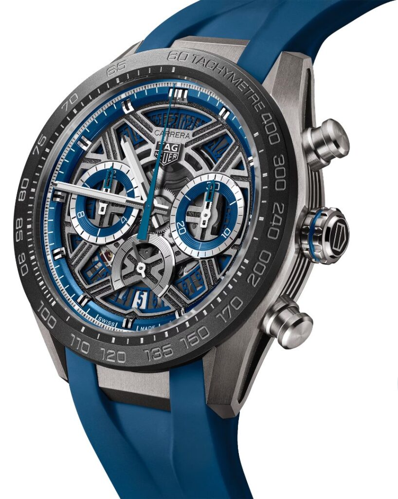 Elevate your wrist game with the TAG Heuer Carrera Chronograph, a testament to the thrill of motorsport. With its bold design and blue accents, this timepiece’s skeletonised dial captures the essence of speed and innovation. Ready to roar ahead in style.