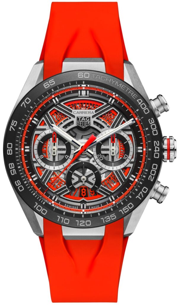 Feel the adrenaline rush of motorsport with this TAG Heuer Carrera Chronograph, where audacity meets precision. The skeleton dial, a nod to the Maison’s shield logo, reveals the vibrant mechanics of passion and performance.